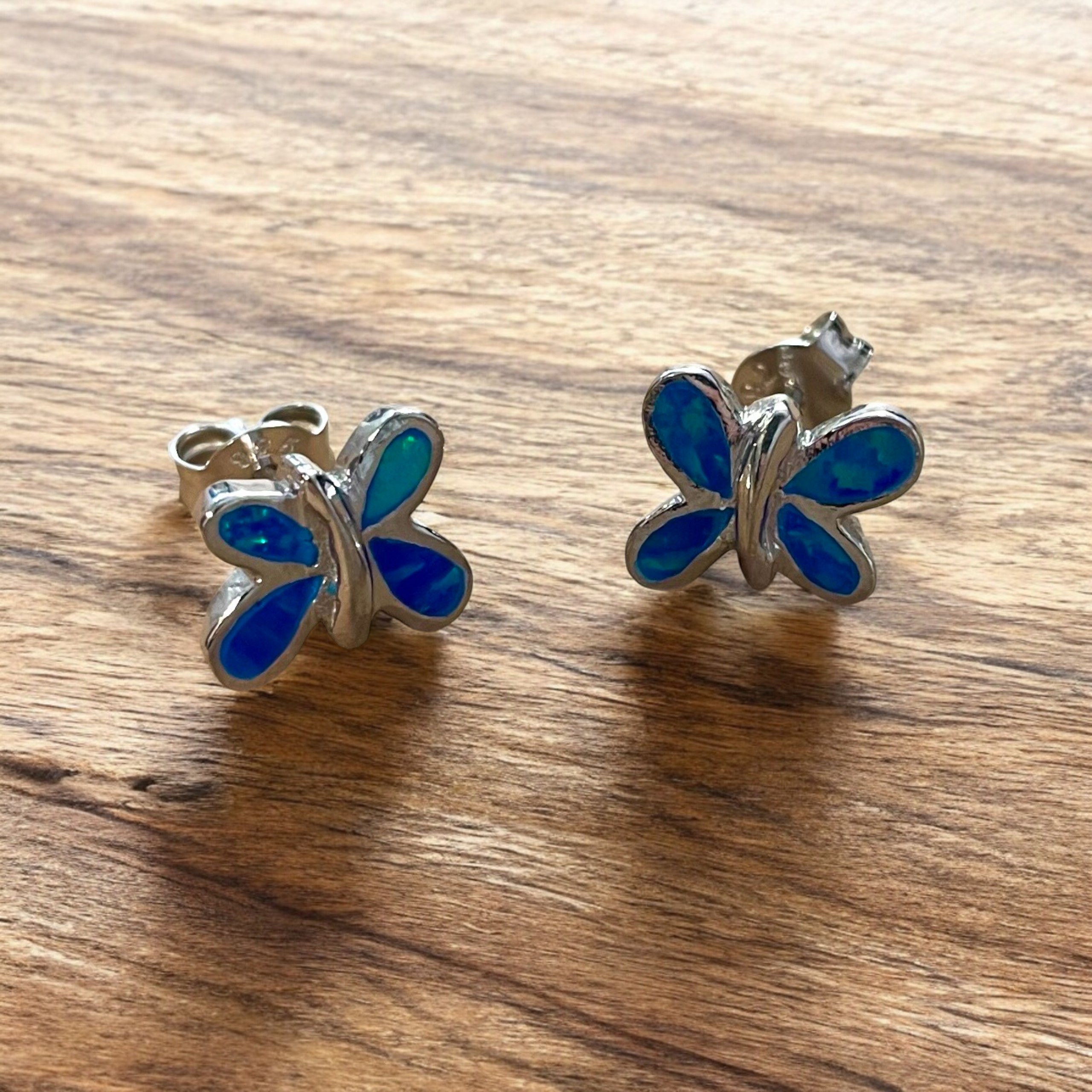 Blue Opalique Butterfly Studs