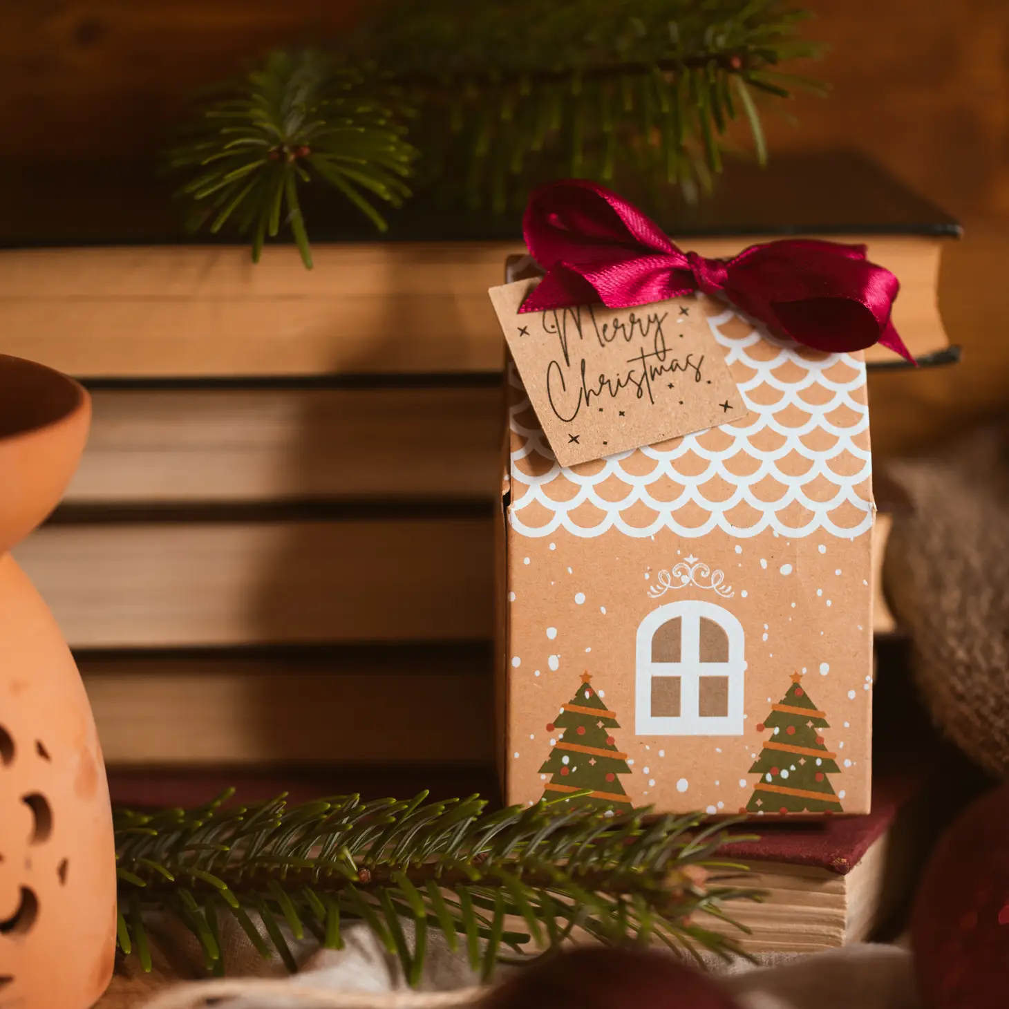 You will receive 10 mini gingerbread men and 10 mini Christmas trees in a gorgeous Christmas themed kraft gingerbread house box.