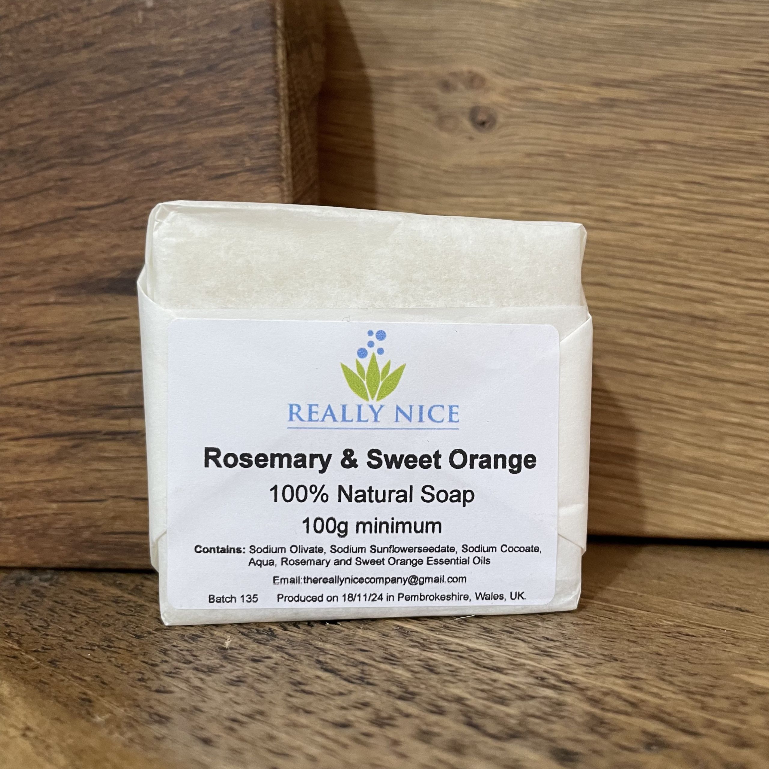 Really Nice soaps are made by hand from Olive Oil, Coconut Oil and Sunflower Oil making it suitable for all skin types.